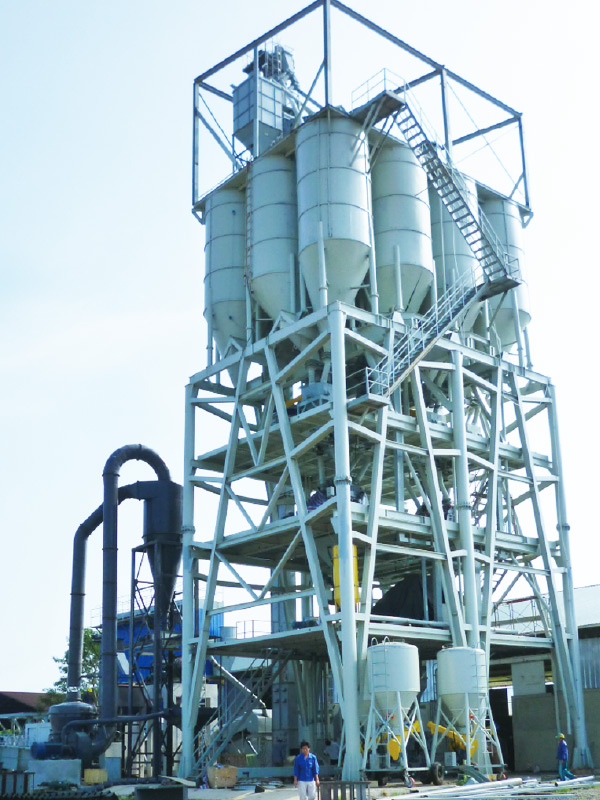 塔樓式適合大規(guī)模生產(chǎn),可生產(chǎn)普通砂漿、特種砂漿等,效率高,運行成本低,產(chǎn)量大,結(jié)構(gòu)緊湊,占地面積小。